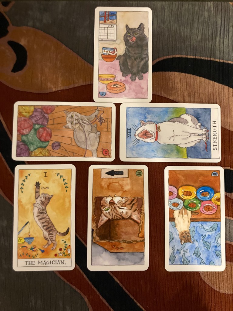 I’ve seen several Waning Moon spreads that take different approaches to look inward and self-examine, identify things (fears, behaviors) that are holding us back, and what we need to release.